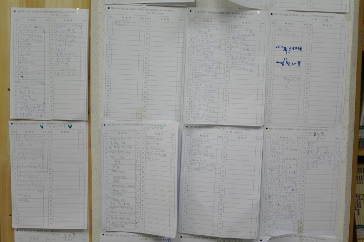 ▲ 자율적으로 책을 대출하고 기록을 남기는 아이들의 흔적이다. 아이들의 발걸음을 재촉하는 작은 아이디어는 한솔문고의 자랑처럼 보였다. 자율적인 운영과 스스로 책을 읽게 만든는 이러한 노력이 평생 학습 마을로서의 자부심을 더 키워주고 있는 듯했다.