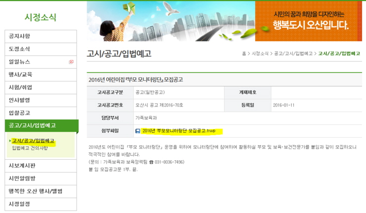 | 어린이집 운영 투명성 높인다, 오산시 부모 모니터링단 모집<시민기자 김연주>; | |||||