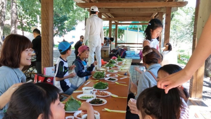 드디어 점심식사 준비완료입니다. 수북한 접시가 금세 바닥을 보입니다.