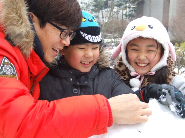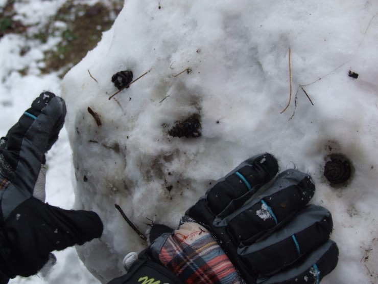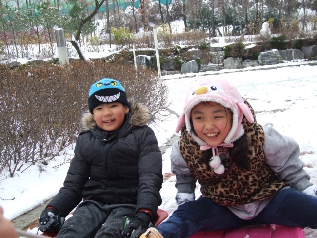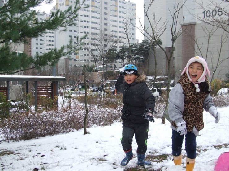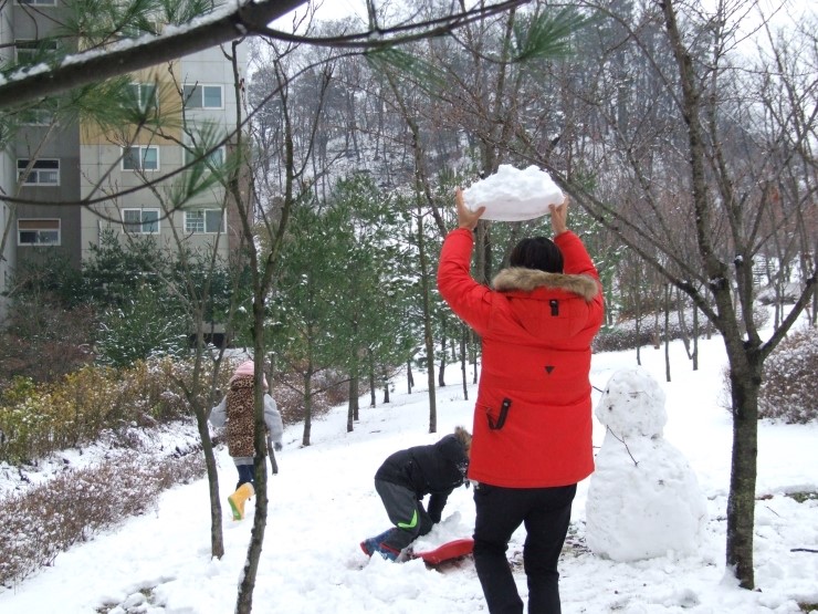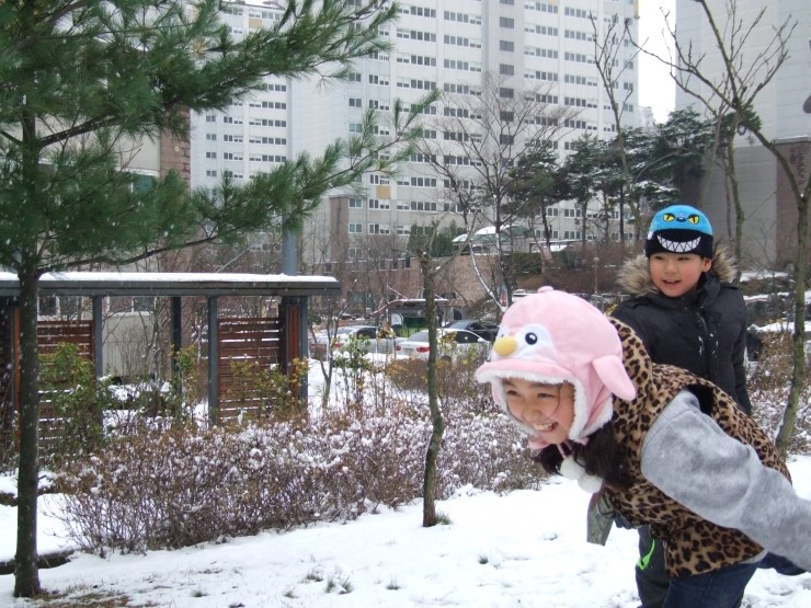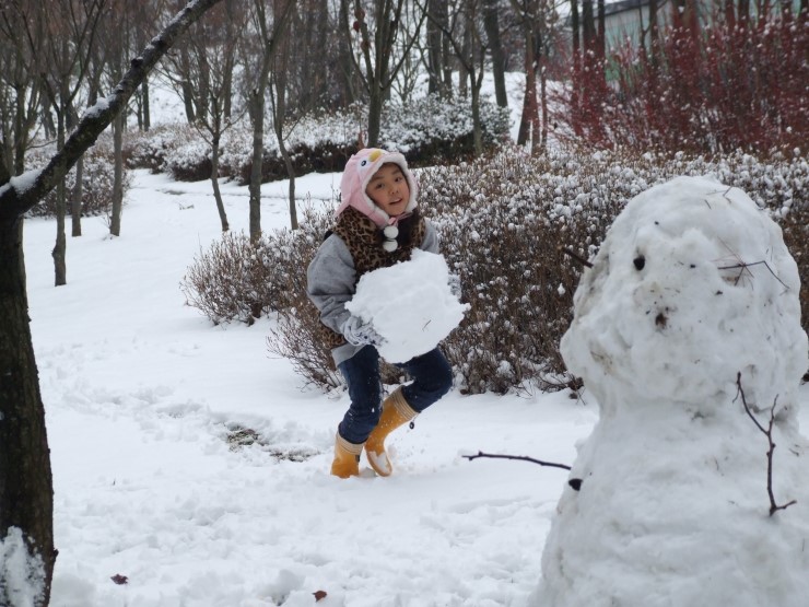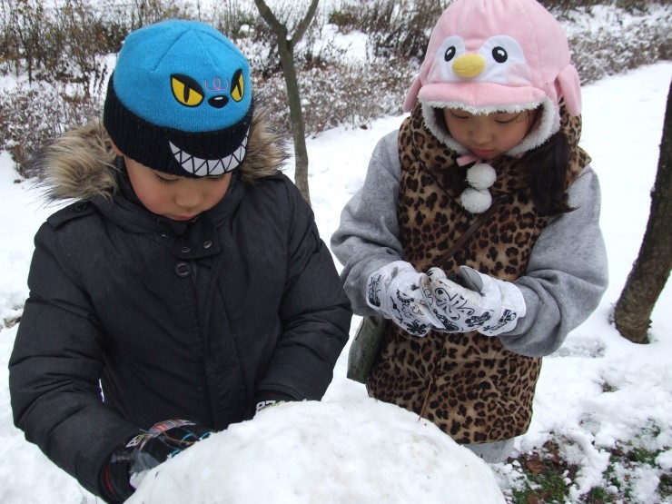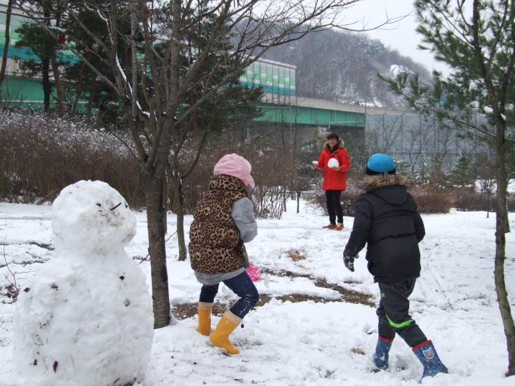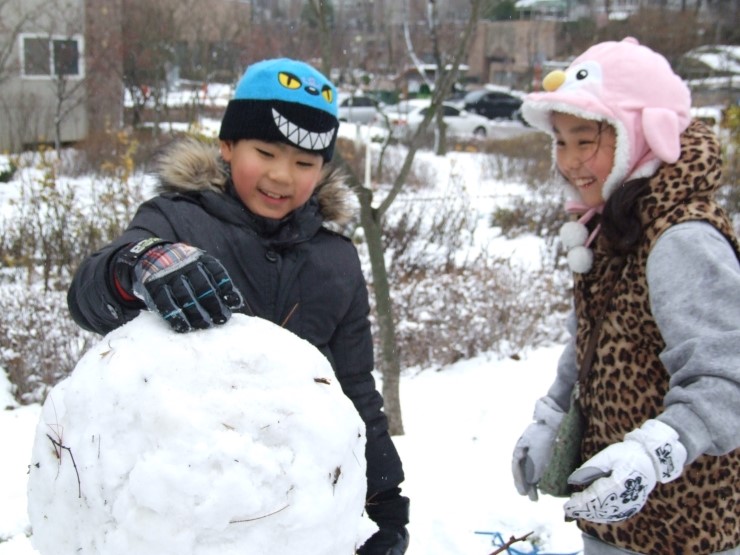 둘이 티격티격 알콩달콩하더니 드디어 완성~! 아기자기 눈,코,입 "귀여운 눈사람이네" 했더니, 아이들은 "사람눈이에요" 라고 말한다. 이것이 아이들에게 보이는 세상인가 보다. 자기들하고 친구가 되어 주기 위해서 태어난 사람, 눈으로 덮힌 사람인 것이다.