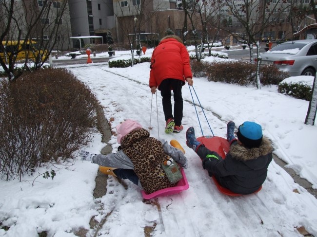 | 오산 여계산 입구 산책로가 눈썰매장으로 변신했다! | |||||