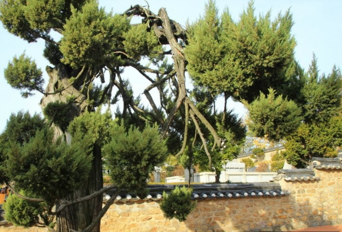 - 벼락에도 굳건히 사당을 지키고 있는 향나무