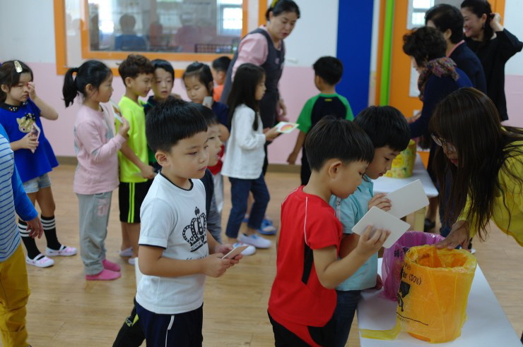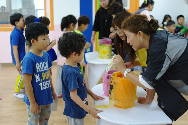 내가 가진 쓰레기를 어느 곳에 버릴 것인지 생각하고, 버리는 연습을 하는 7살 친구들의 모습이다. 교육에 참여한 이근호(7) 어린 친구는 평소에 음식 쓰레기가 이렇게 많은 줄 몰랐다고 했다. 앞으로는 음식도 남기지 않고 먹겠다고 했다.