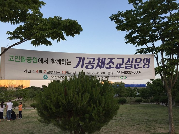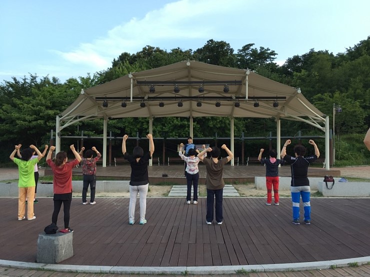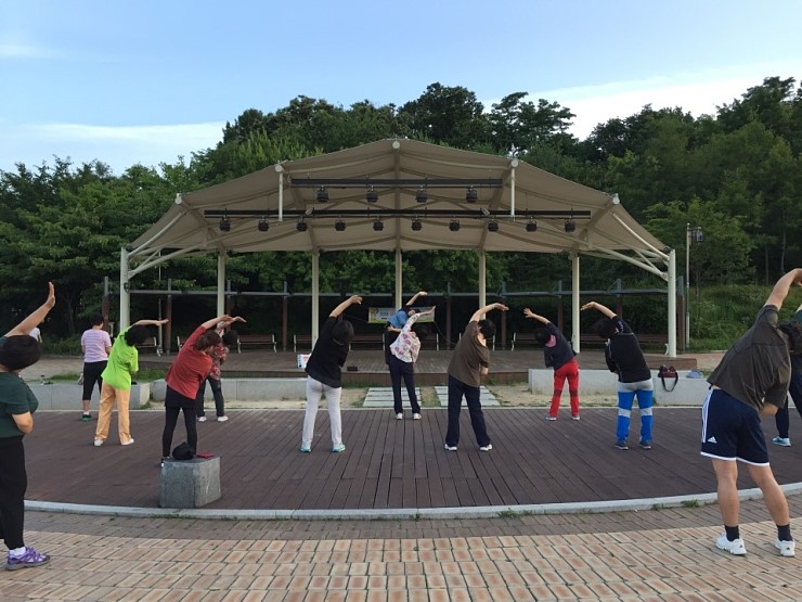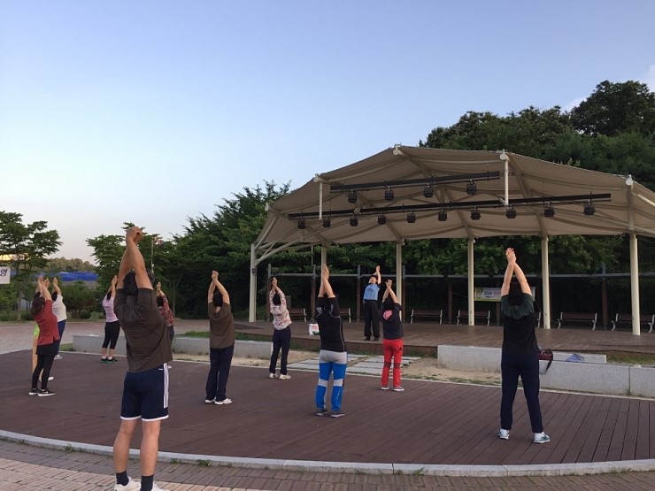 현재 시각 - 오후 7시 10분 장소 세교 고인돌 공원 날씨 - 미세먼지 없이 맑고 깨끗 ![]() 푸르른 6월의 늦은 오후, 고인돌 공원에 모인 사람들. ![]() 적당한 간격을 유지한 채 기공체조 시~~작!!! ![]() 기공체조교실이 평일 저녁 7시부터 8시까지 고인돌 공원 광장에서 열립니다. ![]() 몸 안에 흐르는 기의 순환을 원활하게 하여 건강을 지켜준다는 기공체조! 무엇 보다 따라 하기 쉽다는 것이 가장 큰 장점입니다. ![]() 공원에 산책 나왔다가 합류하는 사람들과 꾸준히 기공체조에 참여하는 사람들이 모여 함께합니다. ![]() 쭉쭉 몸 늘이기~ 한낮의 더위를 잊게 하는 시원한 저녁 바람과 숲의 향기에 기분이 상쾌해집니다. ![]() 직접 해 보니 뭉쳐있던 몸이 풀리고 머리도 맑아지는 느낌인데요, 몸 건강! 마음 건강! 뇌 건강! 이라는 기공체조 구호도 있더라고요^^ ![]() 짝을 지어서 해야 하는 동작들이 있어서, 처음 만난 사람과 손을 마주 잡고 웃어봅니다. 후반부로 갈수록 좀 더 난이도 있는 동작들이 나오는데, 쉬운 동작인데도 힘들다는 사실에 살짝 웃음이 납니다. ![]() 체조가 끝나니 어둑어둑해졌습니다. 행복 터널에도 불빛이 들어왔네요. 오랜만에 움직이느라 놀란 근육들의 떨림을 느끼며 집으로 향합니다. 틈나는 대로 운동하기로 다짐하며~~ 몸 건강! 마음 건강! 뇌 건강! ^^ ![]() |