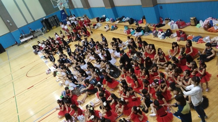![]() 초등학생부 방송댄스에서 당당히 1위를 차지한 유니온스 팀입니다. 무려 73명의 학생들이 참여했는데요. 빨간 장미마냥 한 여학생들 사이로 검정색의 청일점이 보이시나요? 여학생들 틈에서 당당하게 '달링'을 위해서 달려와준 남학생들의 용기와 열정에 손바닥이 아플만큼 큰 박수를 쳐주었습니다.