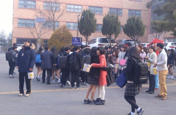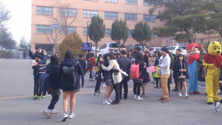 새로 들어온 신입생들은 이런 놀라운 광경에 깜짝 놀라며 서먹서먹해 하다가도 선생님의 손짓에 달려가 와락 안기며 쑥스러운 웃음을 짓습니다. 매년 행사로 익숙한 2,3학년 학생들은 먼저 달려가 선생님에게 폭삭 안깁니다. [너는 소중한 존재야. 친구야 사랑해] 라는 팻말을 들고 있는 친구에게 머뭇거리던 한 친구는 용기를 내어 다가가더니 서로 부둥켜 안고 서로의 등을 토닥여 주기도 합니다.