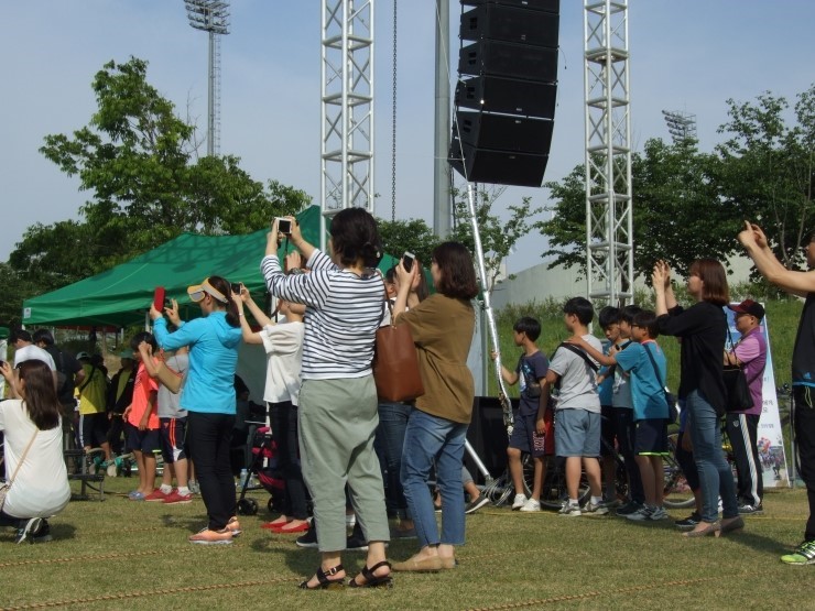 ▲ 오산천 두바퀴 축제 현장을 담고 있는 시민들