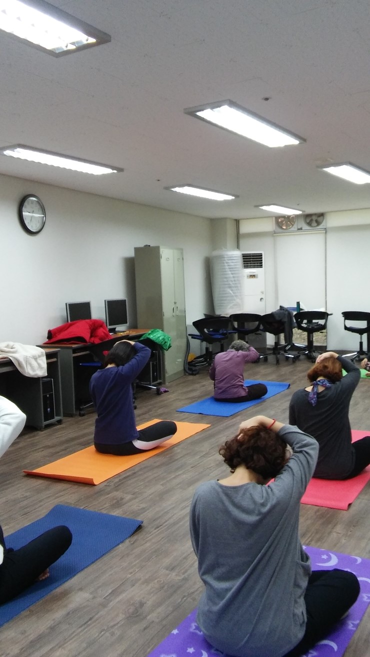 10. 1 - 12. 24일까지 매주 화, 목요일 9:30 -10:30 분까지 3개월간 세교2단지 내에서 요가교실이 열렸다. 건강생활 사업의 일환으로 오산시 보건소에서 지원하는 생활체육으로 3번째 3기이다.