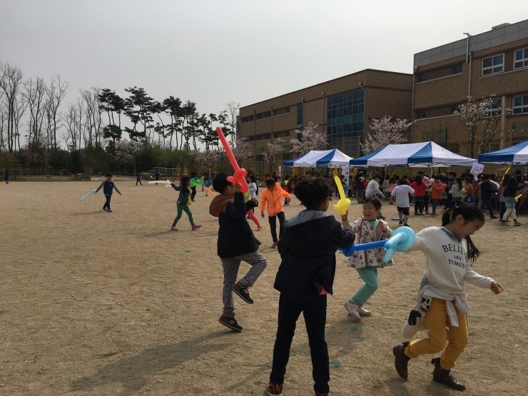 재미있는 비눗방울 체험 나무젓가락, 철사, 고무밴드를 이용해서 스스로 틀을 만들어 비눗방울을 만들어보니 더욱 신기하고 재미있습니다. 봄 햇살에 알록달록 색을 드리운 비눗방울이 살랑 바람에 아이들의 꿈을 담고 멀리 날아갑니다. 자신이 불었던 비눗방울이 너무 커서 모두들에게 “용가리다~!”라고 집중 받기도 하고 커다란 비눗방울을 날려 보내며 한참을 보는 학생도, 다시 잡아서 가져간다며 주머니에 넣는 학생도 있습니다. “저 안에는 너희들이 꿈이 있어 꼭 이루어 질거야” 말했더니 6학년2반 김수혁 학생은 “아, 정말요? 축구선수 꿈이 이루어질 것 같아요” 라며 좋아합니다. 핸드폰 고리 체험 내가 그린 그림으로 단 하나의 핸드폰 고리를 만든다는 큰 의미가 있어서 일까? 친구와 단둘이 화단에 앉아 그림을 그리는 남학생들, “열쇠고리 하나만 만들어요? 많이 만들어서 선물로 주고 싶어요“라며 5학년 3반 신도경 학생은 아쉬워했습니다.