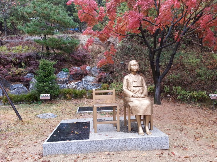 <광명동굴 입구에 자리한 평화의 소녀상>