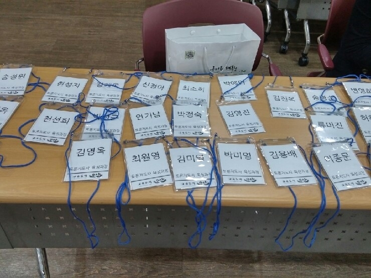 ▲ 서명을 한 다음 이름표를 들고 자리에 앉습니다. 저녁 6시 정각에 시작하지만 학부모님들에 직장맘도 계셔서 시간맞추기가 쉽지 않습니다.