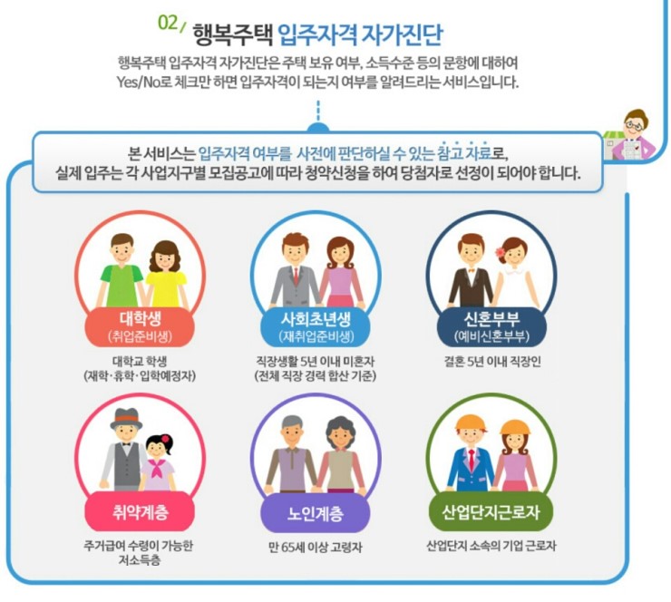 혹시 임대주택, 행복주택 입주에 관심이 있으신 분들은 아래 내용을 확인해서 자가 진단도 해보세요~