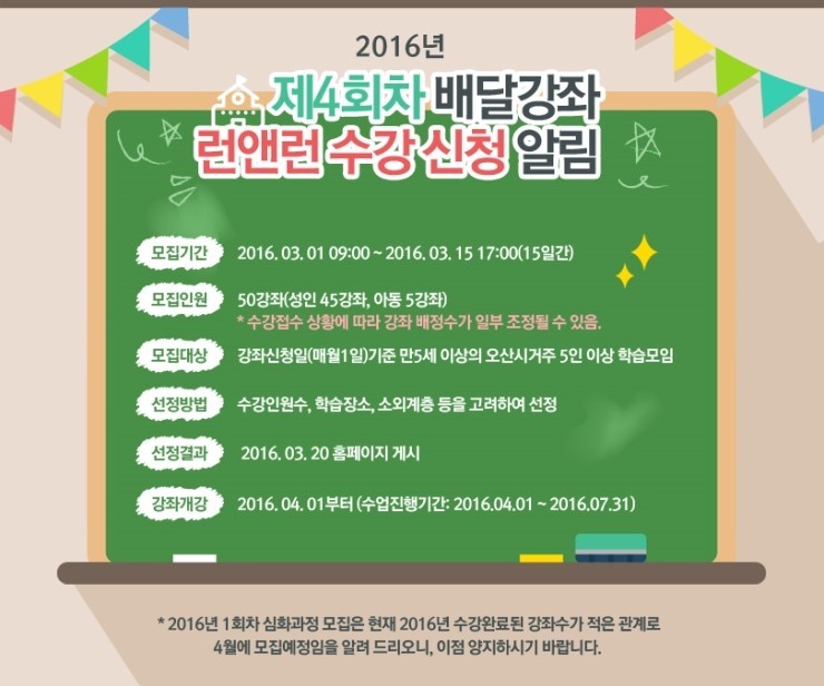 | 오산시 배달강좌 Run & Learn 수강신청 모집안내~<시민기자 김연주>; | |||||