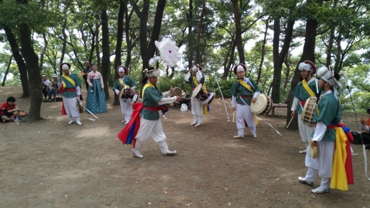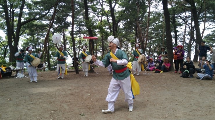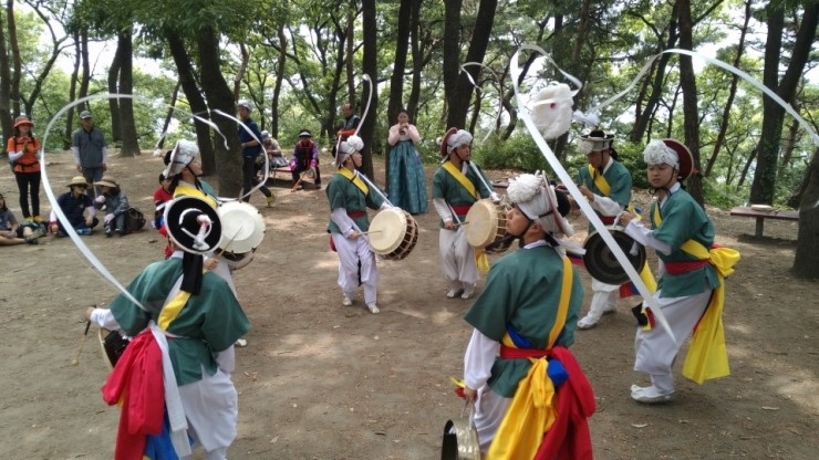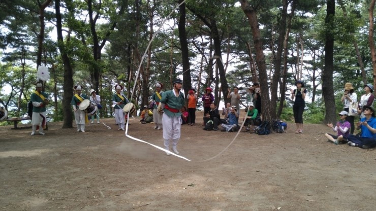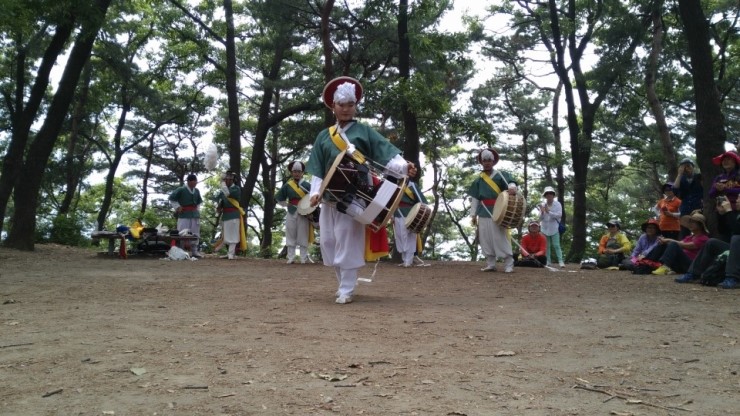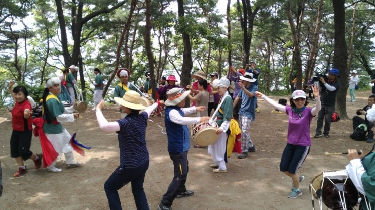 제법 경사가 있는 산길이어서 모두 숨이 거칠어지고 대열이 길어지기도 했으나 선두에서 징과 꽹과리, 태평소를 불며 흥을 돋우는 농악대 소리에 참가자들은 흥에 겨워 어느 샌가 발걸음이 가벼워지는 듯 하다는 소감을나누었다.