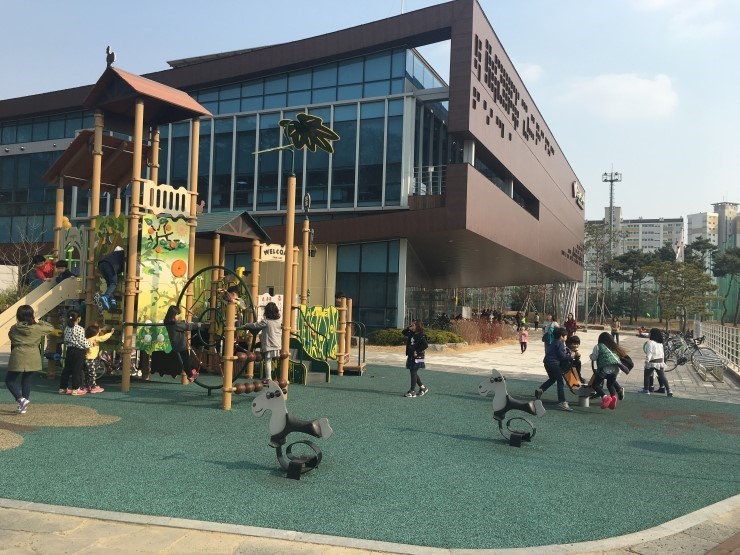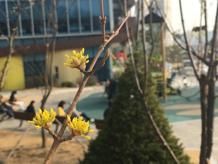 ▲ 꿈두레도서관 어린이놀이터에도 노란 봄이 찾아왔어요.