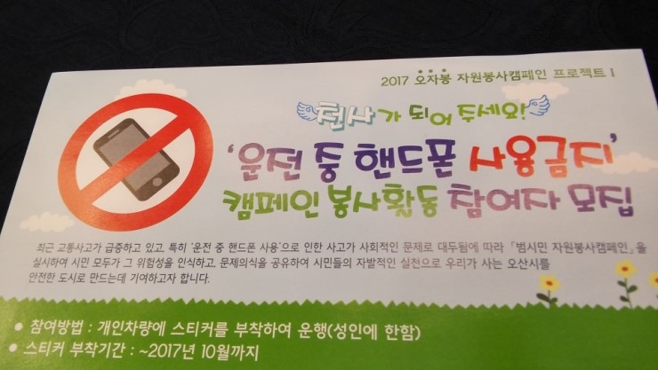 능동적 참여의 하나로 운전 중 핸드폰 사용금지 캠페인 봉사활동 안내와 설명도 이어졌다. 공론의 장으로 열린 이번 워크숍은 해결에 대한 의견, 문제 제기, 관심으로 성황리에 이루어졌고 안면도 자연휴양림 관람으로 마쳤다.