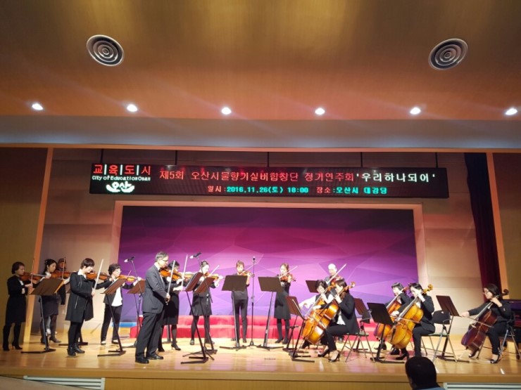 오산문화원 공창배 원장의 인사말과 최병훈 단장의 간단한 내빈 소개에 이어 공연이 시작 되었는데요 '우리 하나되어'라는 주제로 제 5회 오산시물향기 실버합창단 정기연주회가 26일 토요일 오후 6시 오산시청대강당에서 있었다.