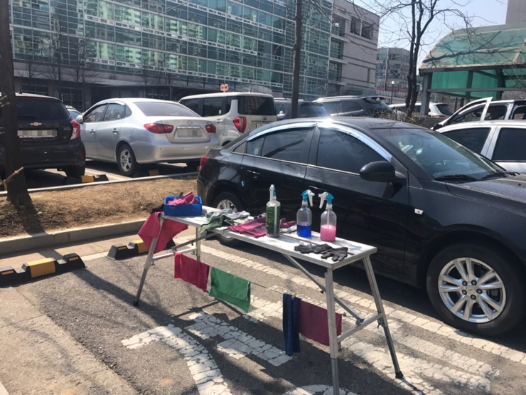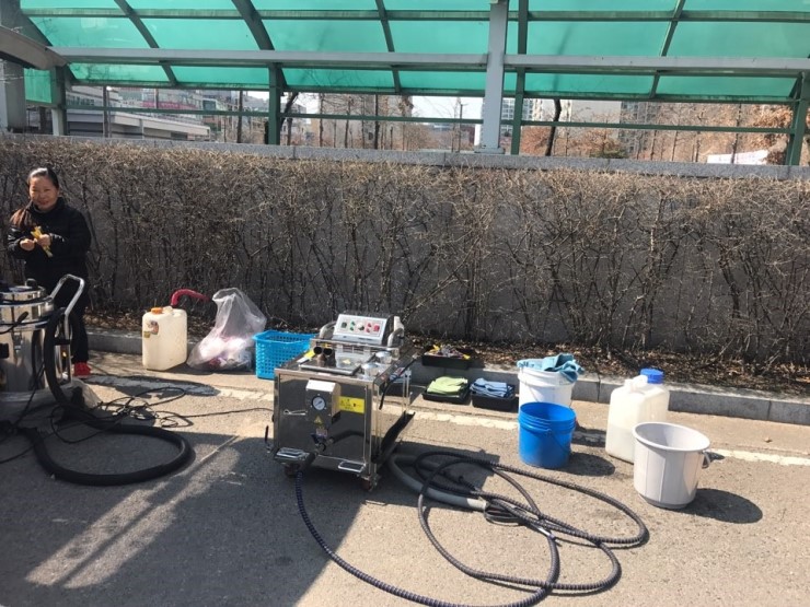방문했던 날은 경차 및 하이브리드 전용주차장 쪽에서 열심히 세차중이신 모습을 볼 수 있었습니다. 한 켠에서는 세차도구도 볼 수 있었구요.