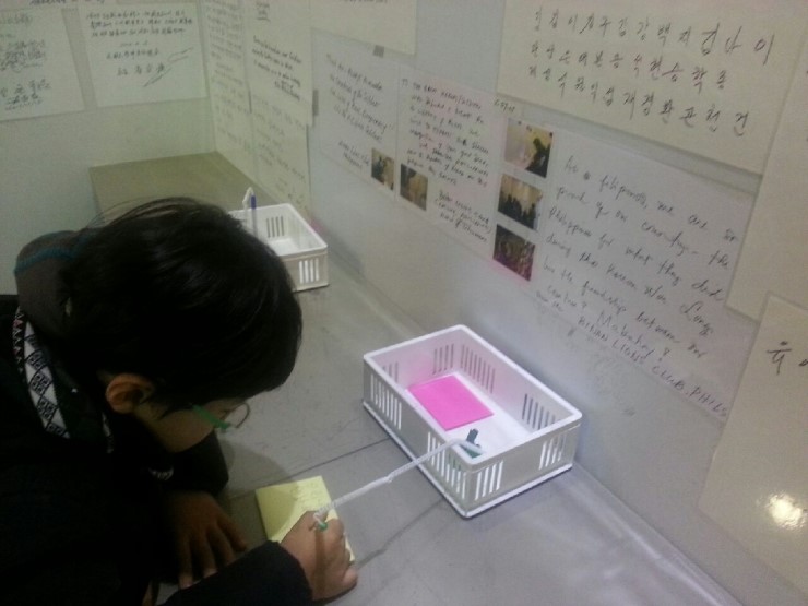 마감시간이 다 되어 전시장을 나오려는데 첫째아들 자기도 메세지 하나 남겨야 한다며 고사리 같은 손으로 한 문장 적네요."다시 전쟁이 일어나지 않았으면 좋겠다"라고 메세지를 남겼습니다.