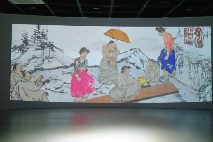 단원 미술관 제 3관에 가보시면 '단원 김홍도'에 관한 영상물과 연보를 한 눈에 볼 수 있습니다. 영상물은 화려한 색채로 수놓은 김홍도의 그림을 가미시켜 인물들이 살아 움직이는 듯하였습니다. 김홍도의 그림이 생생하게 다가왔습니다.