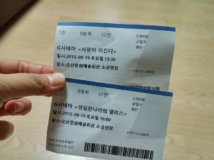 오늘은 지난번보다 많이 오셔서 더디지만 사람들의 관심은 조금씩 조금씩 데워지는구나 생각했답니다. 오산문화재단에서도 홍보를 많이 하는데도 불구하고, 주말에는 바쁘셔서 많이 못오시는듯 합니다. 하지만, 다음에는 꼭 보러와 주실거죠....? 작품성도 훌륭하고 생각할거리, 볼거리도 풍부한 영화들이라 안보면 땅을치고 후회하실지도 모르거든요.ㅎㅎㅎ