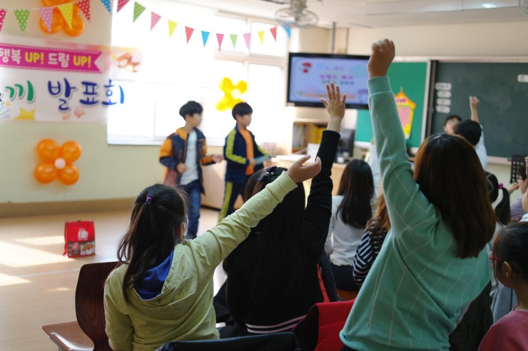 넌센스 퀴즈시간, 아이들은 너도나도 손들 들고 열띤 경쟁을 펼쳤다. 웃음을 유발하는 질문 타임, 아이들은 서로의 얼굴을 보며 웃음 지었고 또 웃었다. 교실이 웃음 바다가 되는 시간이었다.