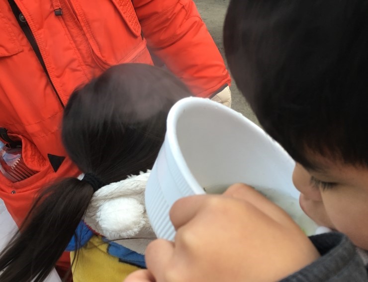 ▲ 얼었던 몸이 금새 녹았어요 “너희들 안 졸리니?” 엄마, 아빠를 따라 나섰지만 해도 못보고 섭섭할 줄 알았는데 다행이었다.