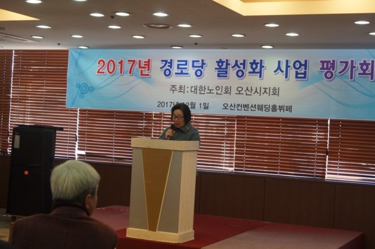 대한노인회 오산시지회(지회장 조재웅)는 이달 1일 경로당 회장과 회원, 그리고 관계자 등 260여 명이 참석한 가운데 오산컨벤션 웨딩홀 3층에서 2017년 경로당 활성화 사업 평가회를 열었다.