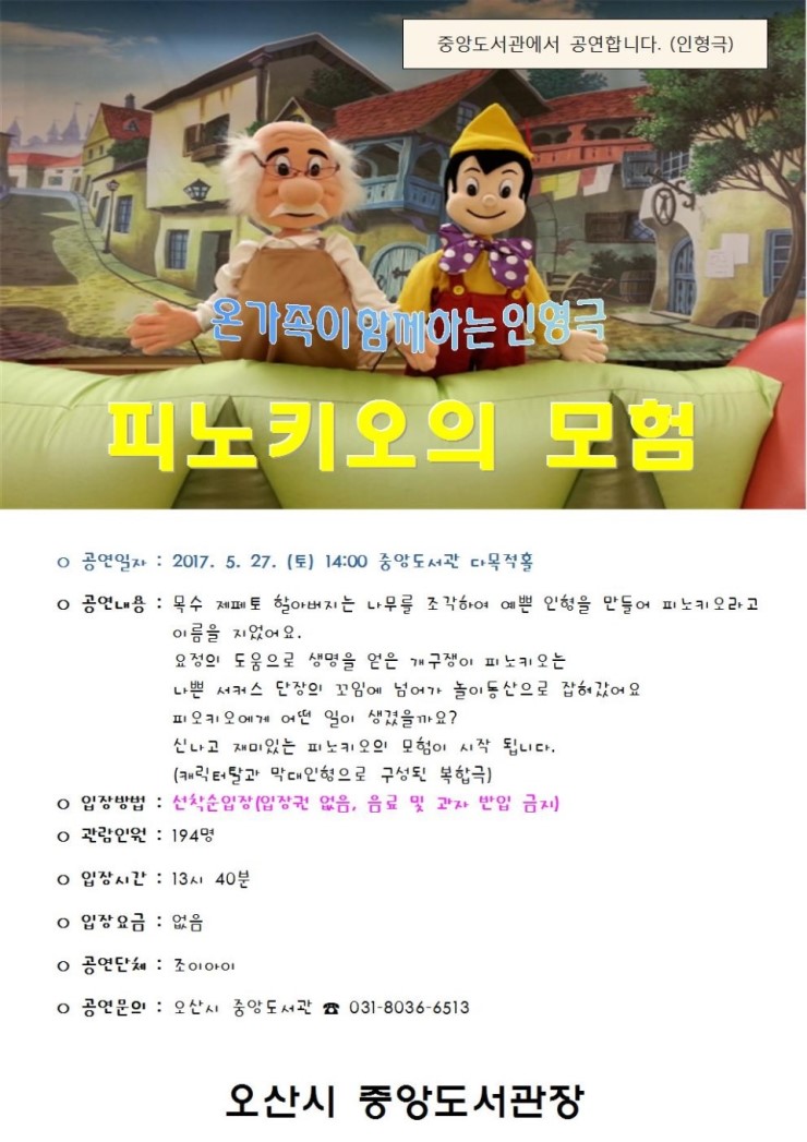 '조이아이'라는 공연 단체의 인형극인데요. 내용은 아래와 같아요.