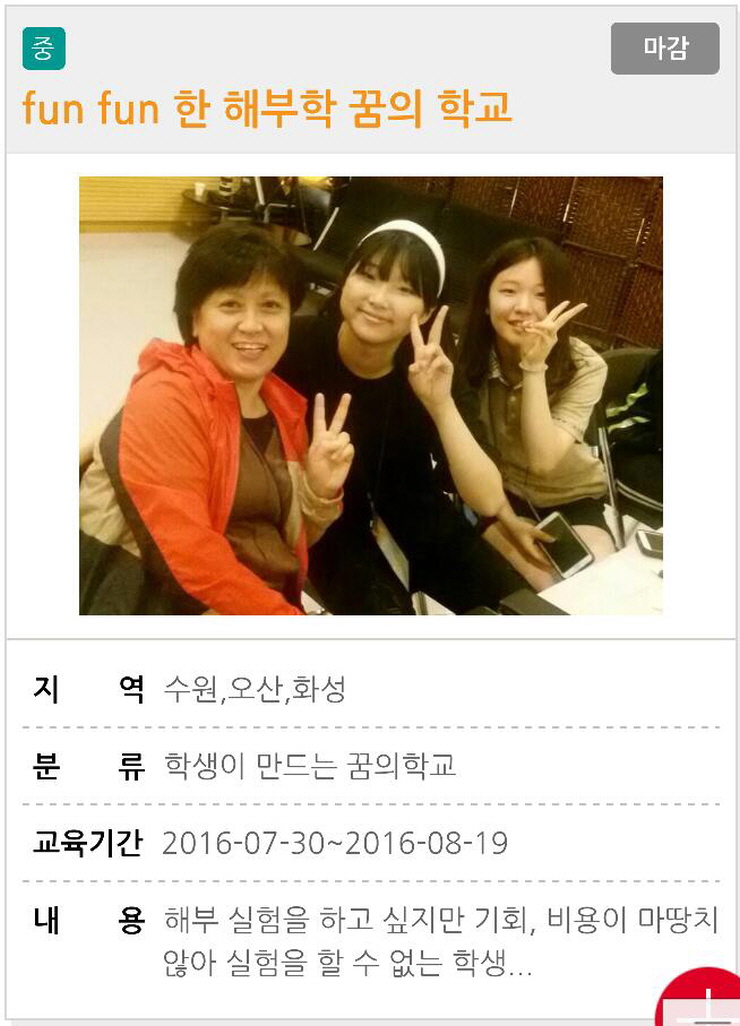 8월 2일 오후1시 세마중학교(교장 최연숙) 과학실에서 오산, 화성, 수원 중학생12명, 꿈지기교사(세마중 윤석란)과 학부모들이 모여 Fun fun한 해부학 꿈의 학교 개교식이 열렸다.