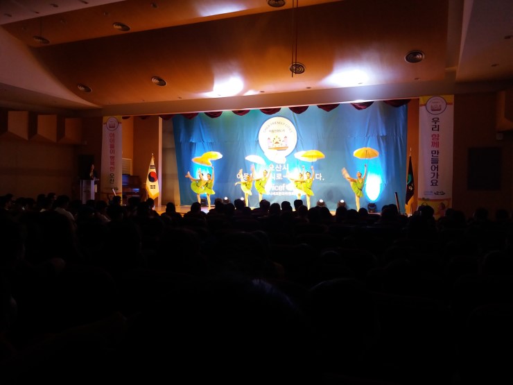 유니세프 아동친화도시 인증 선포식의 마지막을 장식하는 아이들의 축하공연이 있었습니다. 식에 같이 참석했던 아들의 눈빛이 가장 빛났던 순간들이었습니다. 시립지역아동센터 라온제나합창단, 운산초운암초 발레군무, 원일중 Dreamer 댄스, 소리춤 사물놀이의 공연이 차례대로 있었습니다. 무대 위의 아이들의 모습이 이 날의 주인공답게 당당하고 멋졌습니다.