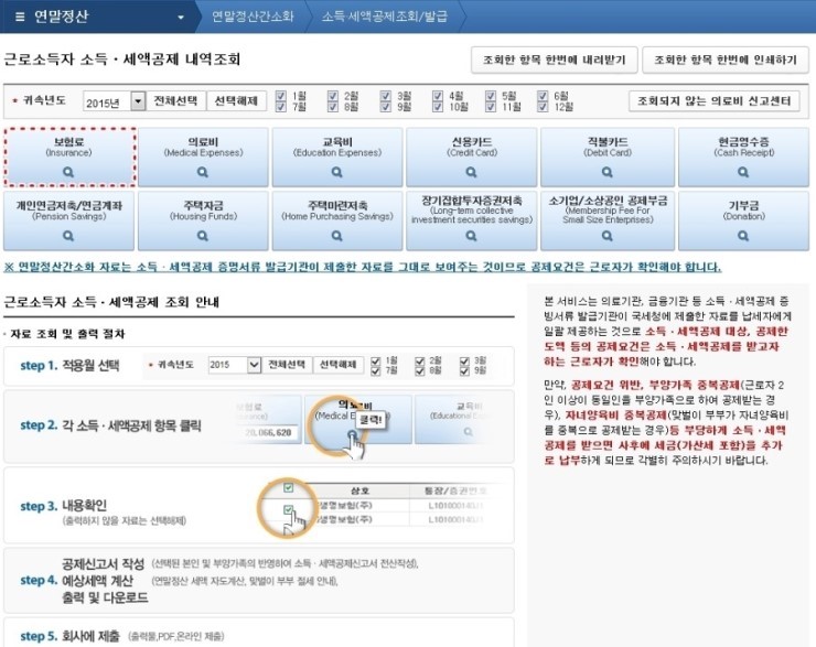 국세청 홈텍스 홈페이지 간소화 서비스를 통해서는 의료비와 보험료, 교육, 주택자금 등 13개 항목의 증명자료를 내려받거나 출력할 수 있습니다.