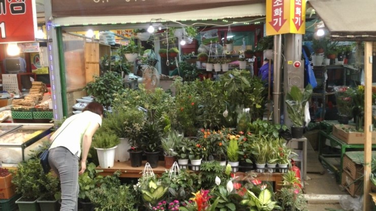 전통시장에는 먹는 것만 있지 않다. 갖가지 화초를 판매하는 화원이다.