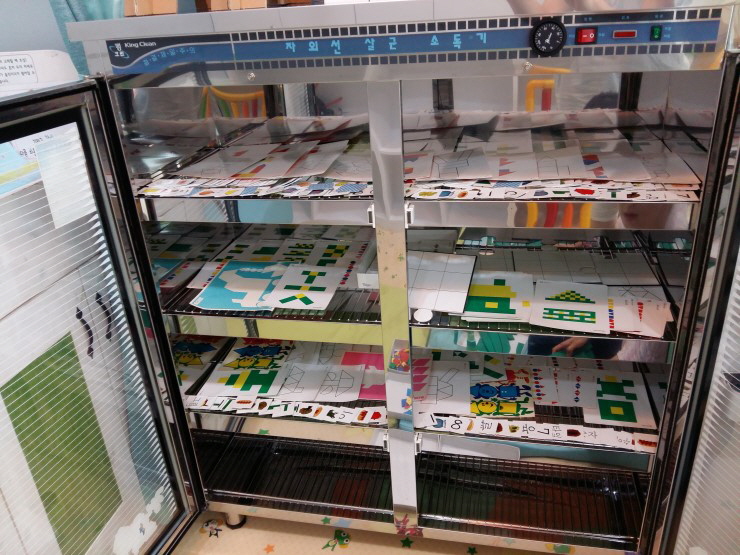 △ 장난감을 자외선 살균기에서 40분간 고온 살균, 건조하여 세균을 말끔히 제거합니다.