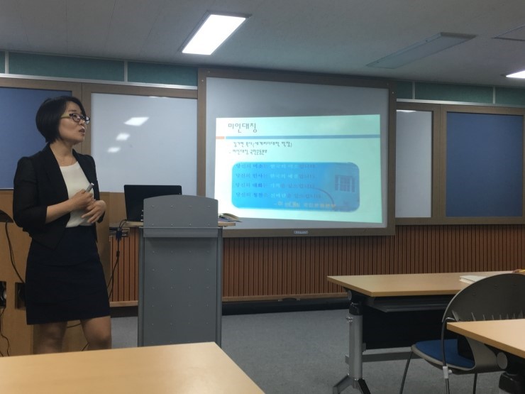 ▲ 미·인·대·칭의 효과를 설명하고 있는 홍지숙 멘토