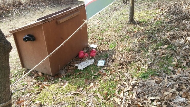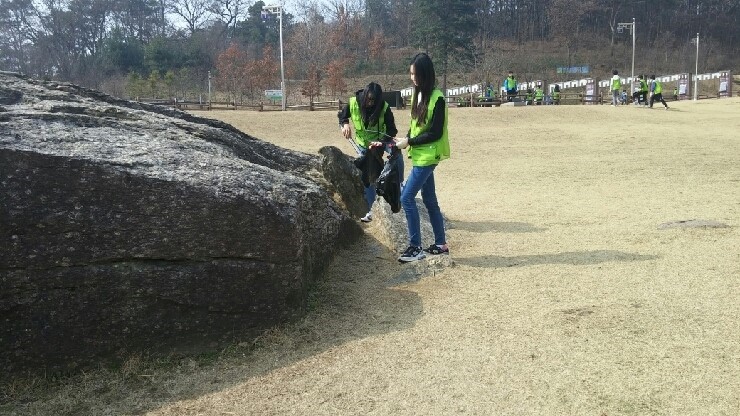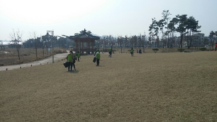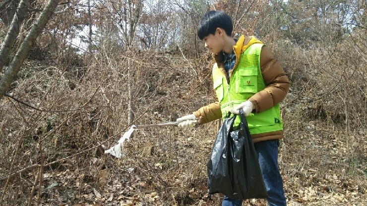 집게와 비닐봉투를 하나씩 들고서 쓰레기 찾아 출동합니다.