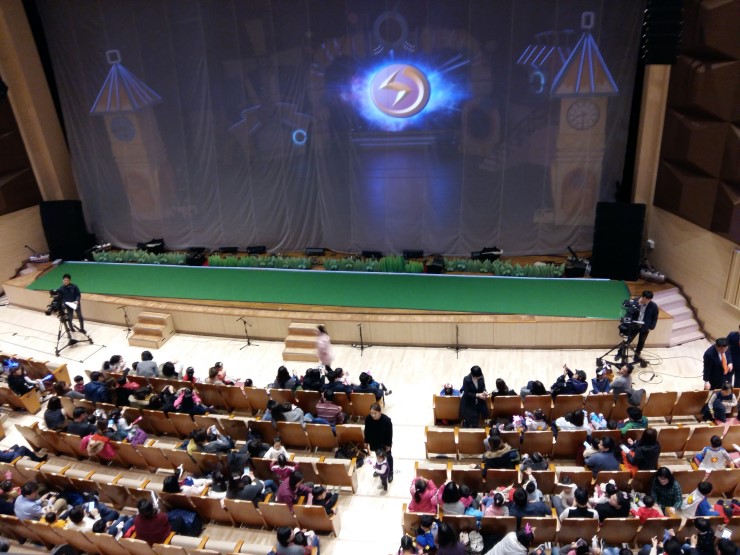 문화예술회관 대공연장 입구는 번개맨, 번개걸 의상을 입거나 응원도구를 손에 쥔 아이들과 부모들로 붐볐습니다. 지정석이 2층이라 아쉽긴 했지만 2층의 열기도 1층 못지않게 뜨거웠습니다.