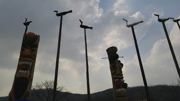 하늘높이 우뚝 선 까마귀 솟대