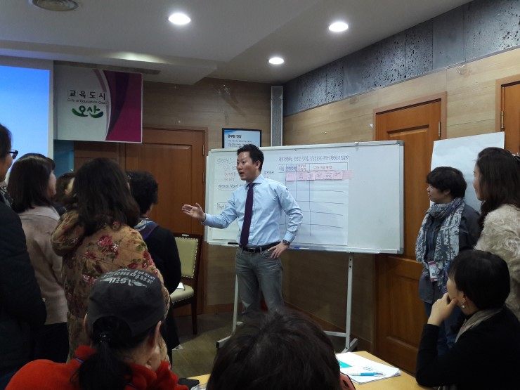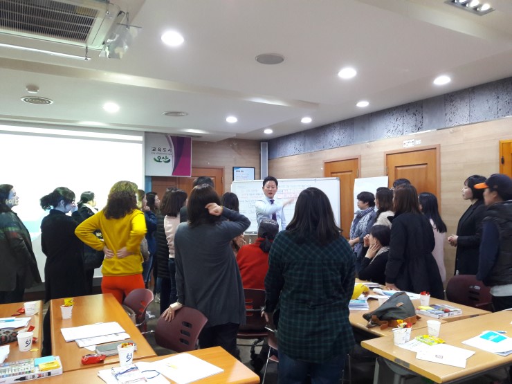 ▲ 런앤런 전달 사항을 고지 중인 정미경 평생교육사 지난 11월 16일부터 20일까지 오산시청 물향기실에서 6회로 나누어 교육을 실시했는데요.