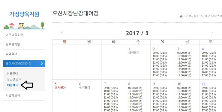 오산시육아종합지원센터 홈페이지(http://osanchild.or.kr/) 에서 회원가입을 하신 후 가정양육지원 - 오산시장난감대여점 을 클릭합니다.