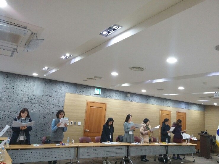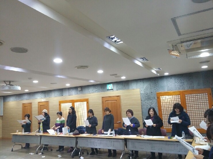 모두 기립해서 선언문을 낭독합니다. 천천히, 진중하게, 단어 하나하나에 방점을 두어 낭독하다보면, 선언문은 어떤 마음가짐으로 앞으로 나갈 것인지 자신과의 약속이 되기도 합니다.