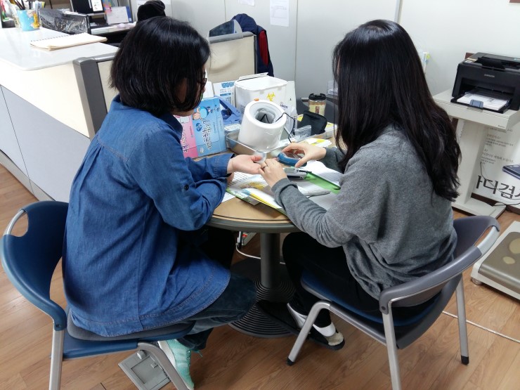 저도 그 대상에 해당되어 전화로 사전예약 후 방문하여 건강체크를 받았습니다. 간단한 혈액검사를 통해 혈당과 총콜레스테롤, 고밀도(HDL)콜레스테롤, 저밀도(LDL)콜레스테롤, 중성지방 수치를 측정하여 자신의 현재 건강상태를 알 수 있었습니다. 또 앞으로 지향해야할 식습관과 운동방식에 대해서도 처방을 받았답니다.