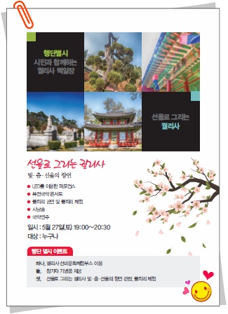 시민과 함께하는 궐리사 백일장 '행단별시' 행단별시 이후 행사는 퍼포먼스, 시 낭송 등 선율로 그리는 궐리사가 이어지며 시민들의 많은 참여를 바란다고 한다.