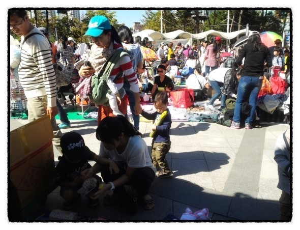 지난 5일(토) 동탄 센트럴파크에서는 [재활용 나눔장터]가 열렸다. 이 행사는화성Ymca의 주관으로 매달 첫째주 토요일, 1시부터 4시 30분까지 진행된다. 이 나눔장터에는 몇가지 이용규칙이 있는데, 지켜지지 않을 시 나눔장터 공원의 이용이 취소되니 잘 메모해 두었다가 불이익을 당하는 일이 없도록 하자. 1. 판매자의 판매물건은 재활용 또는 재사용 물건으로 제한된다. 2. 판매자의 돗자리 규격은 1.8m x 1.5m 이내로 제한한다. 3. 천막설치는 금지된다. 우산이나 양산은 OK! 오전 10밖에 안된 시간이지만, 이날도 날씨가 좋아 많은 시민의 참여가 예상되어, 분주히 준비하고 있는 모습이다.