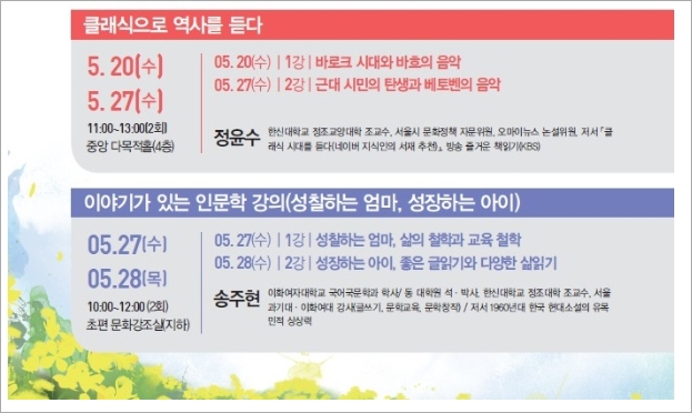 | 오산시도서관에서 오산시민들을 위한 인문학 강좌를 마련했습니다.