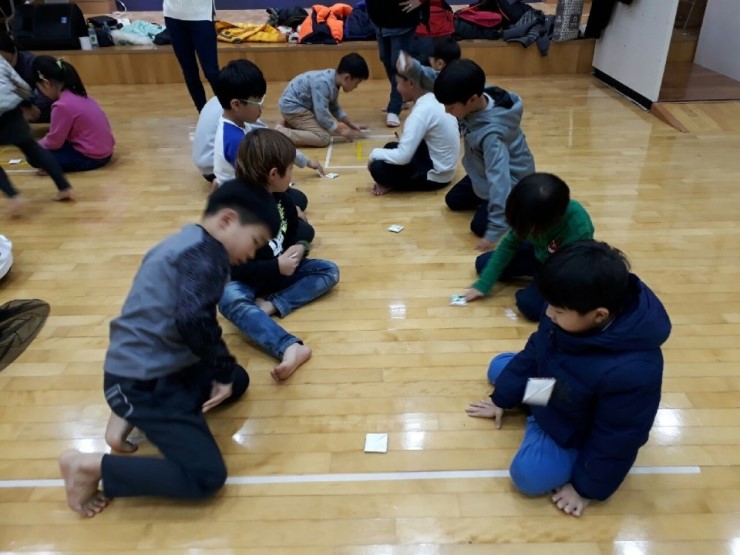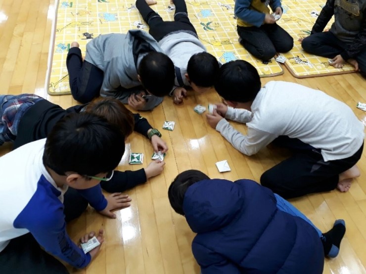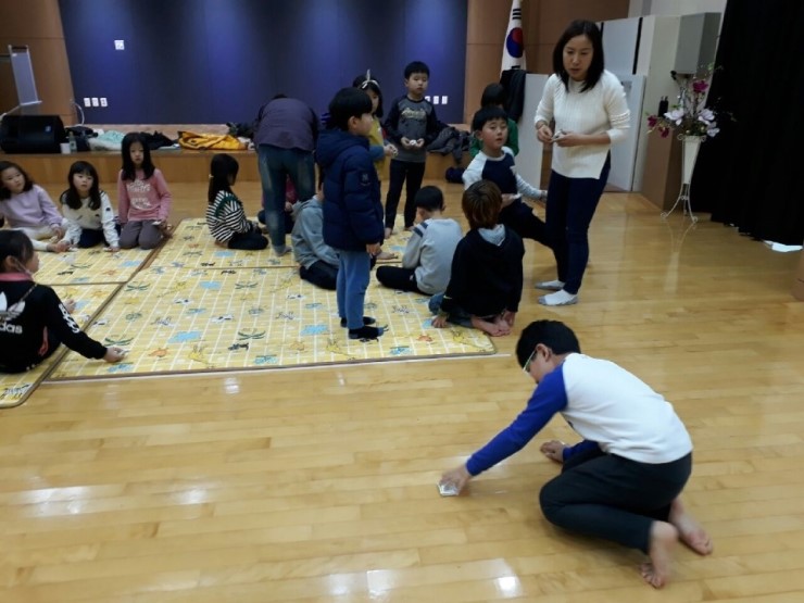 11월 셋째 주 수요일 양산도서관 다목적실에서 오후 4시부터 5시 30분까지 전래놀이 수업이 있었습니다. 전래놀이에는 실뜨기, 달팽이 놀이, 그림자 밟기, 두꺼비집 짓기, 무궁화 꽃이 피었습니다 등 여러 가지의 놀이가 있는데요. 이 날은 남자아이들에게 인기가 많은 딱지 놀이를 하였습니다.