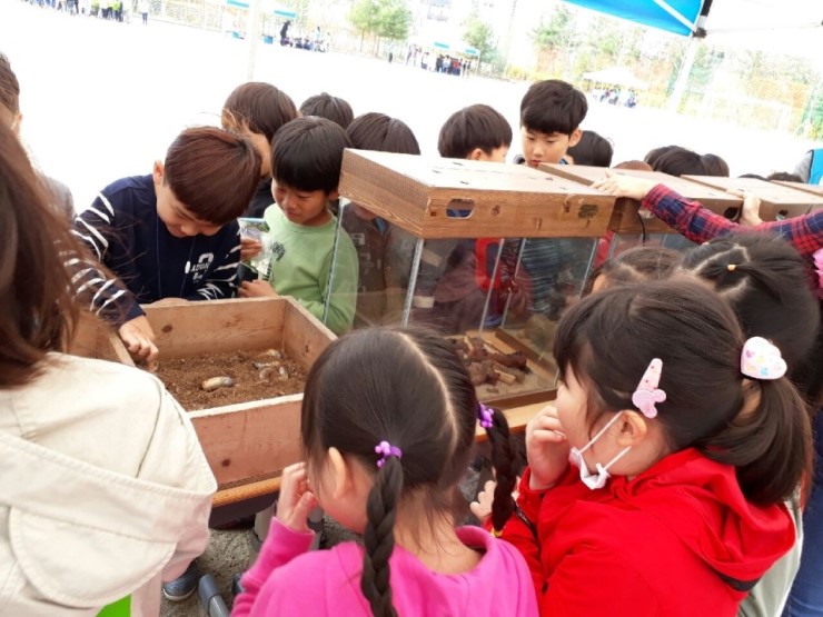 작년과 다르게 아이들의 관심이 많은 곤충들을 전시해, 만져보고 관찰하며 체험할 수 있는 부스가 있었다. 세계의 나비와 장수풍뎅이, 사슴벌레를 관찰하며 종은 같지만 생태에 따라 다른 모습을 확인하고 차이점을 눈으로 비교해보았다. 시간이 부족해 한 명 한 명 여유 있는 관찰을 할 수 없는 것이 아쉬웠지만 생명과학을 접해보는 유익한 시간이었다.