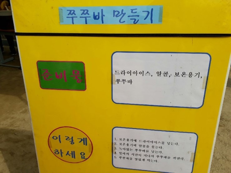 작년에 이어 올해에도 드라이아이스를 냉각제로 하여 아이들이 좋아하는 간식을 만들어보는 체험이 제일 인기가 많았다. 작년엔 새콤달콤 슬러시를 만들었는데 올해는 다양한 맛의 쭈쭈바를 만들어 과학 체험의 열기로 생긴 갈증을 잠시 해소했다.
