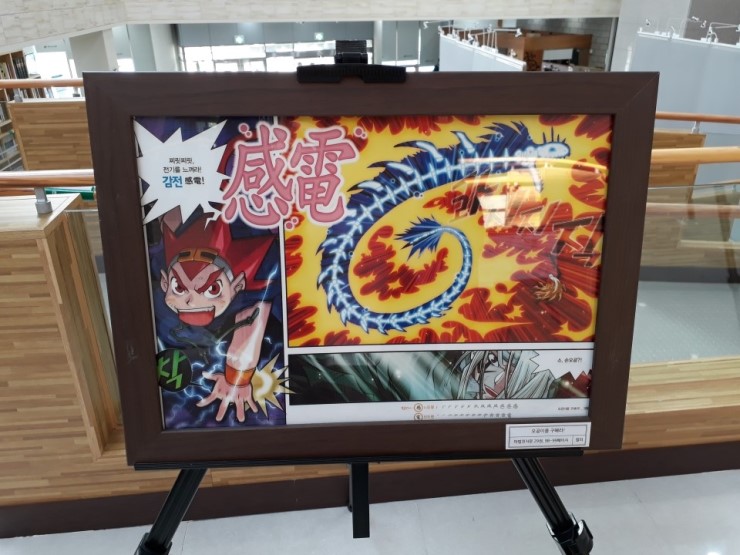 도서관 1층 전시실에는 마법천자문 그림들이 전시되어 있습니다. 한자도 익힐 수 있고 내용도 유쾌하여 아이들이 즐겨 읽는 만화책이라 아이들이 눈을 떼지 않고 그림에 집중하는 모습을 볼 수 있었습니다.