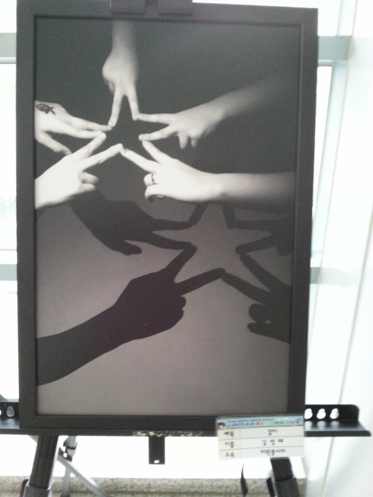 오산남부복지관 1층 로비에 전시중인 작품들 스마트폰 사진 전시회는 눈이라는 주제로 오산남부복지관 1층 로비에서 전시중인데 아이들이 관심을갖고 그들의 시선으로 찾아낸다양한 소재와 그들의 머문 시선을 카메라에 담고 인화한 작품들이다. 이작품들은 또 다시 관람객의 시선을 잡아당기고이야기를 던지며 공감을 자아내고 있다.